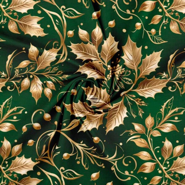 Vær den første til at anmelde “Jersey print med kristtjørne i guld – julegrøn” Annuller svar
