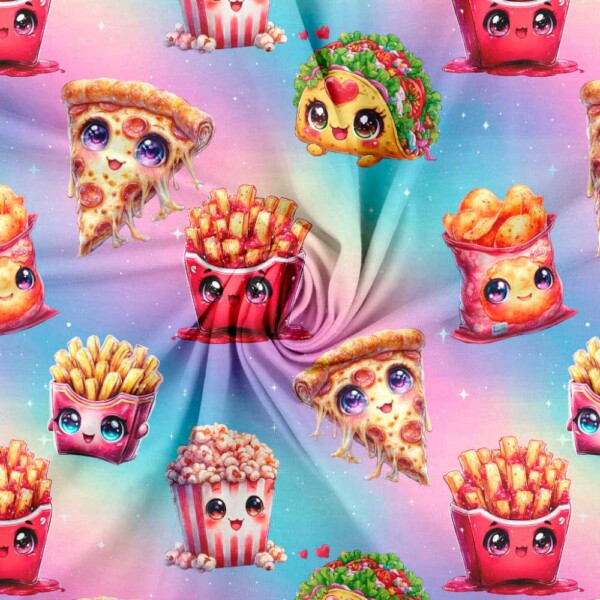 Jersey print med lækker mad – pastel