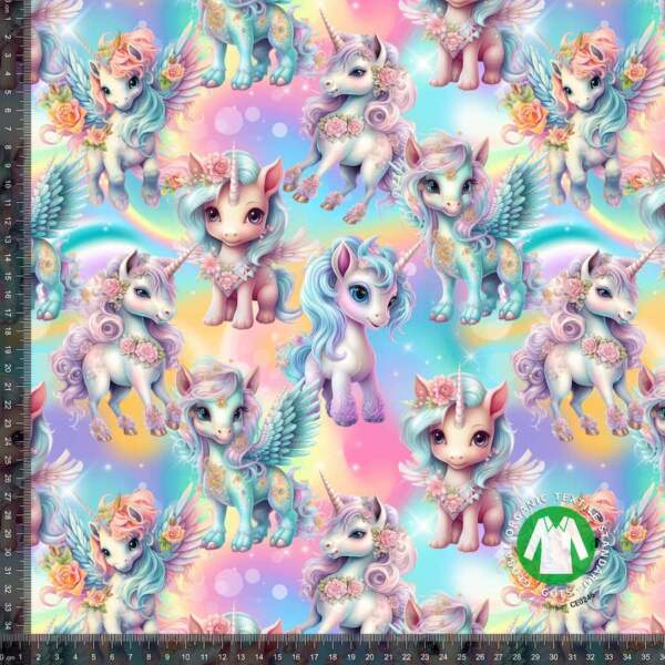 Jersey print med pastel enhjørninger