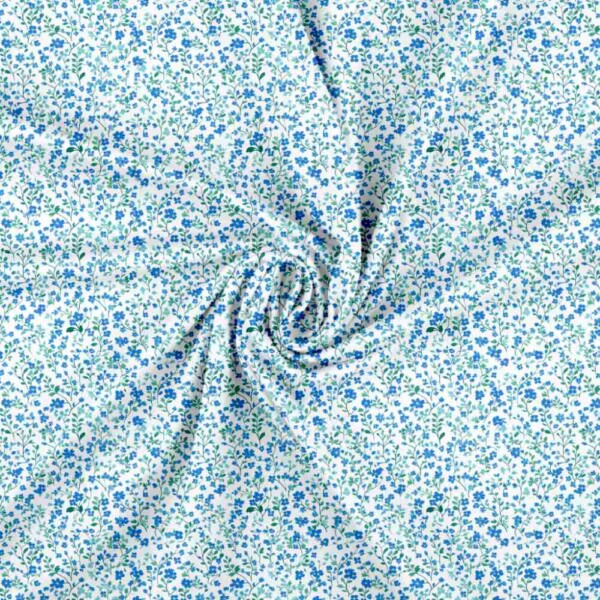 Jersey print med små forårs blomster – blå