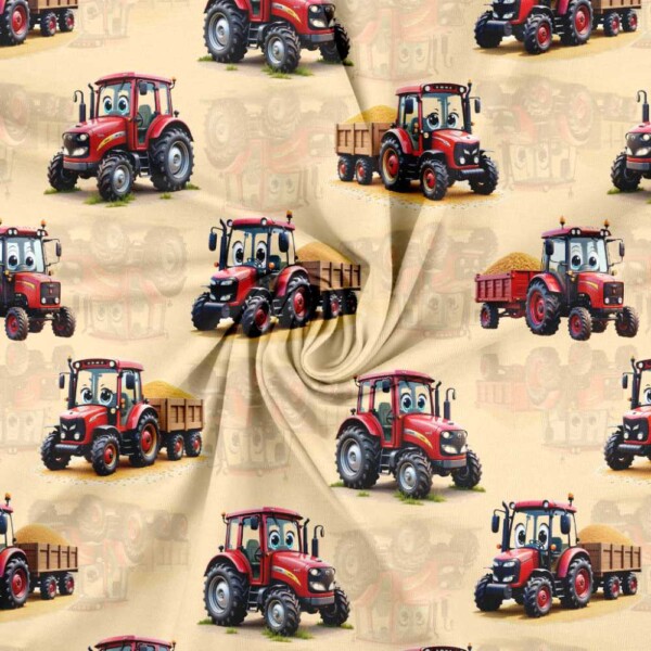 Jersey print med søde røde traktorer