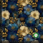 Tämä ylellinen trikookangas ihastuttaa kauniilla sinisillä ja kullanvärisillä kukkakuvioilla, jotka loistavat tyylikkäästi tummaa taustaa vasten. Kuvio yhdistää syvän sinisiä, vaaleansinisiä ja kermaisia kukkia, joita korostavat hienostuneet kultaiset ääriviivat ja yksityiskohdat. Kukkasten välissä kimmeltävät kultaiset lehdet ja sinisen eri sävyiset yksityiskohdat tuovat kankaaseen syvyyttä ja moniulotteisuutta.